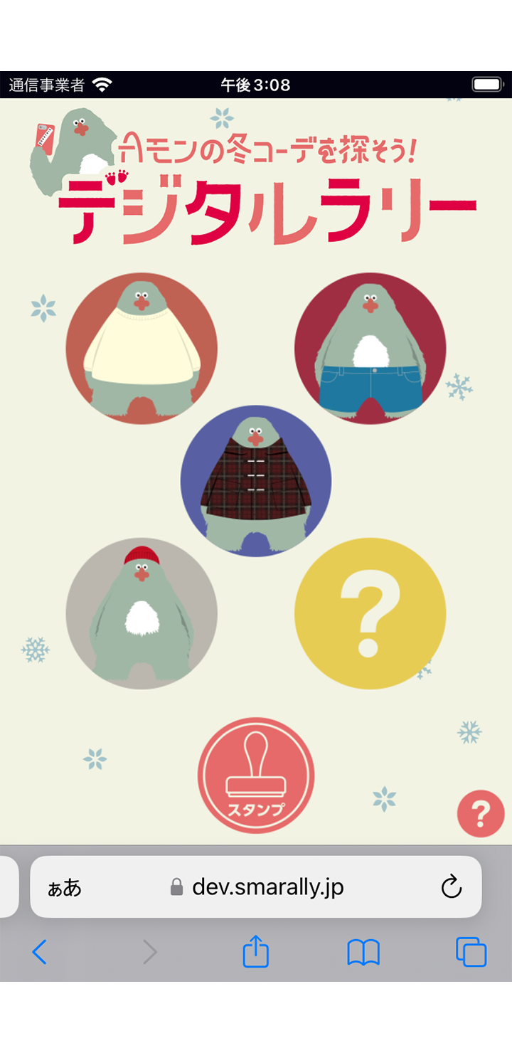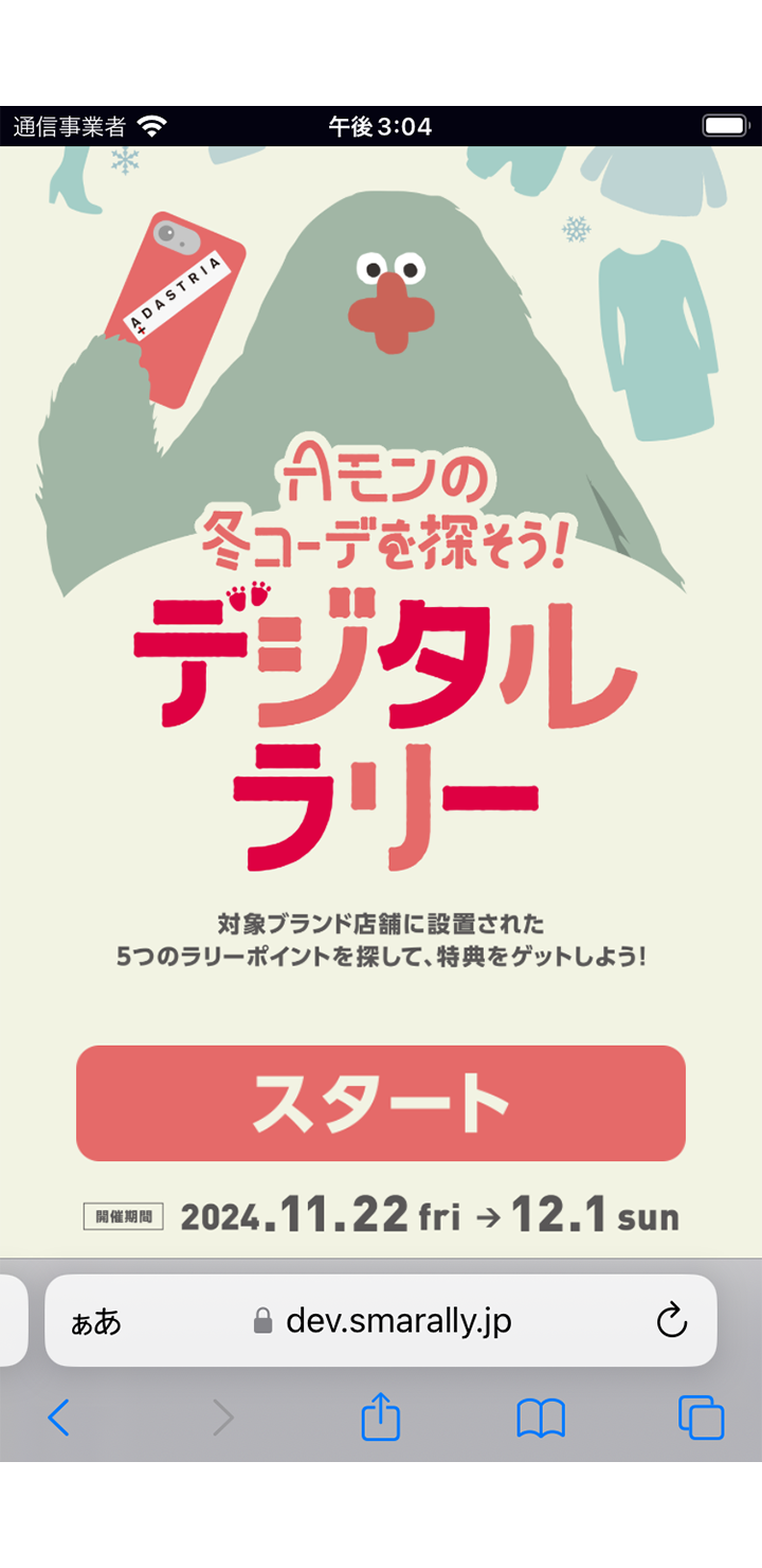 全国20ヶ所のショッピングモールにて、アダストリアの各ブランド店舗をめぐるデジタルスタンプラリー「Aモンの冬コーデを探そう!」を制作しました。