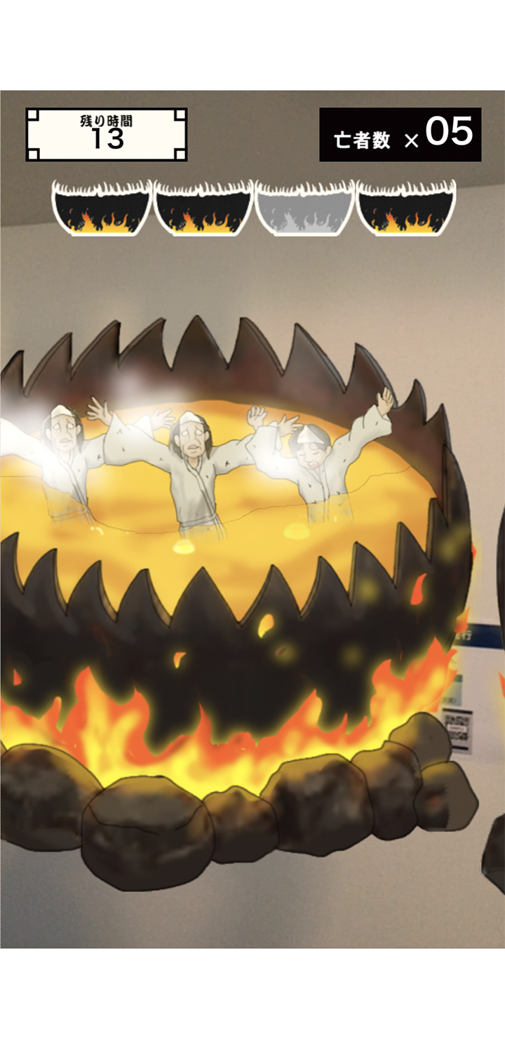 本イベントは、人気アニメ「鬼灯の冷徹」の世界観を体験できる周遊型謎解きアトラクションです。オプショナルツアー「マキミキの地獄体験」では、スマートフォンを使ったARミニゲームを実装。参加者は焦熱地獄と阿鼻地獄、それぞれのステージで先輩獄卒の指導を受けながら、亡者への呵責を体験し、ミニゲームをクリアしていきます。