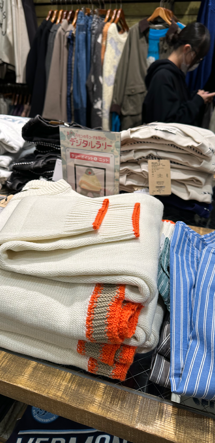 期間中は、niko and ...、GLOBAL WORK、LOWRYS FARM、studio CLIP、BAYFLOW、JEANASiS、PAGEBOYなどアダストリア傘下の対象ブランド店舗を巡り、店内に隠された冬のファッションを楽しむキャラクター「Aモン」を探してスタンプを集めます。すべてのスタンプを集めてコンプリートすると、10%OFFクーポンを獲得できます。